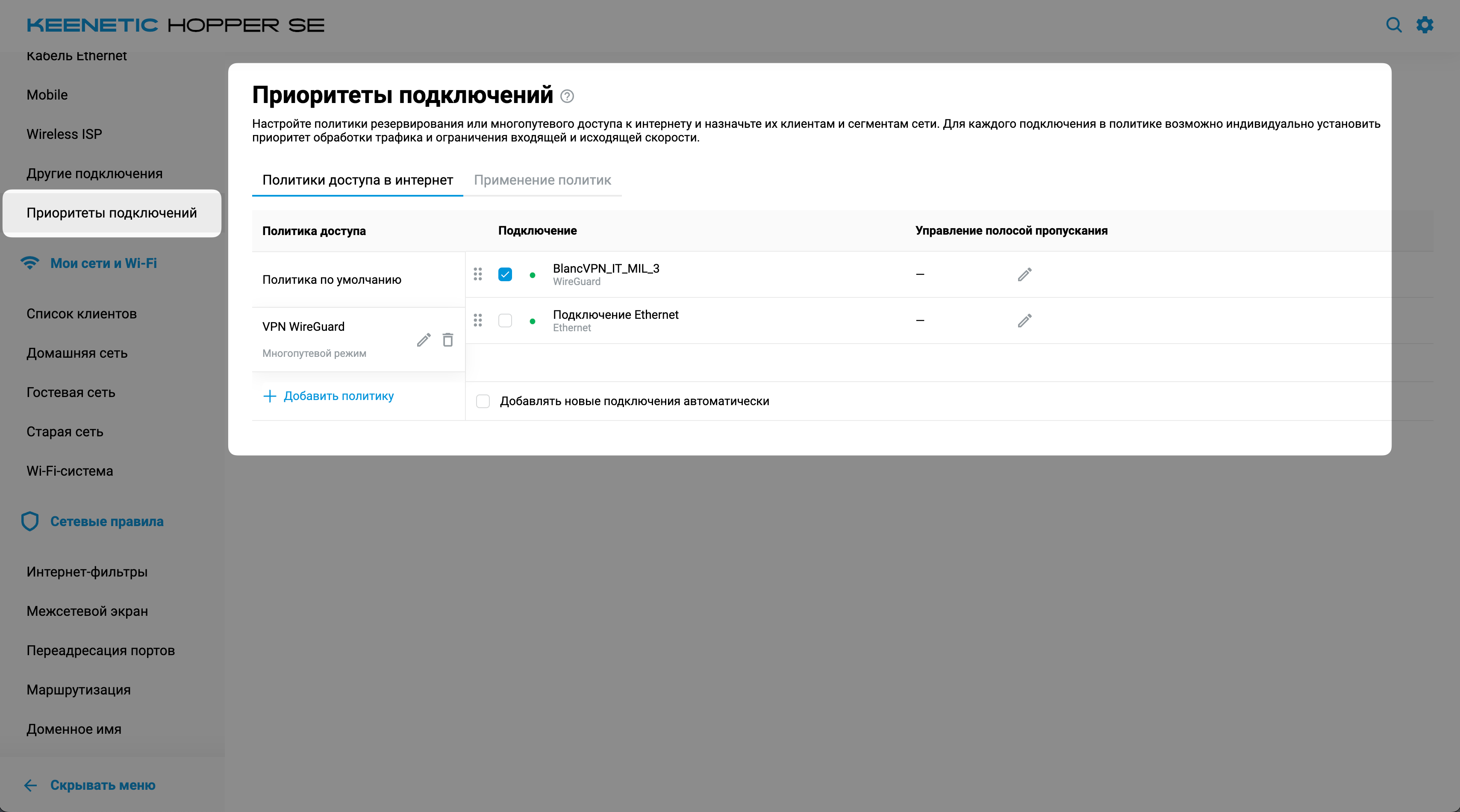 - В разделе Приоритеты подключений назначьте нужные устройства (клиентов роутера) соответствующим Wi-Fi-сетям и политикам доступа.